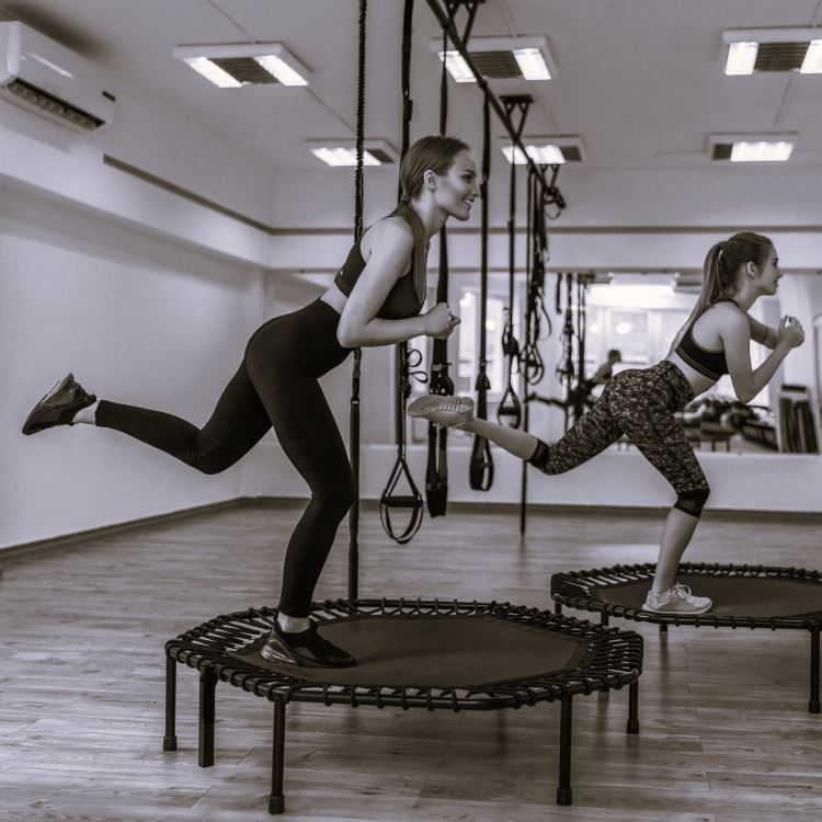 JUMPUma aula muito animada com exercícios aeróbicos sobre um pequeno trampolim, focados no fortalecimento dos membros inferiores. HORÁRIOS: Terças-feiras, 09h Quintas-feiras, 09h Sextas-feiras, 19h
