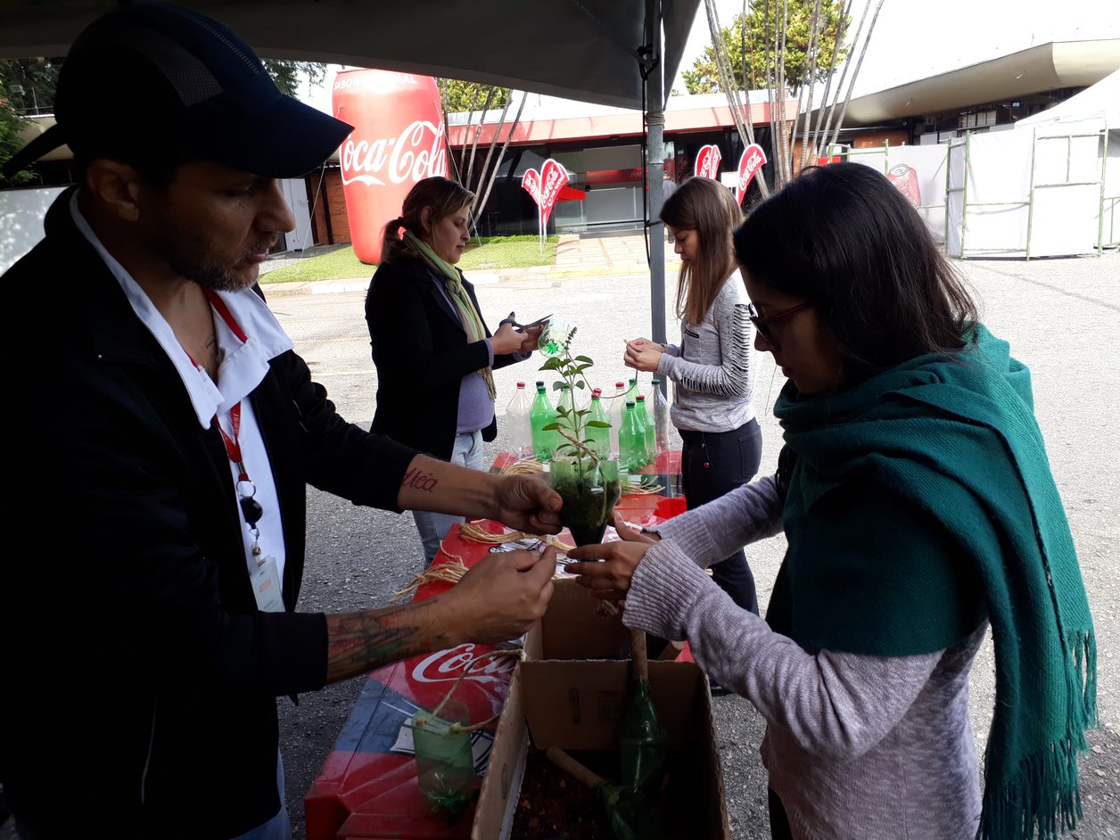 Ao final da experiência, cada participante pôde ainda transformar uma garrafa PET num vaso com planta, levando uma lembrança para casa a partir da reutilização deste material.